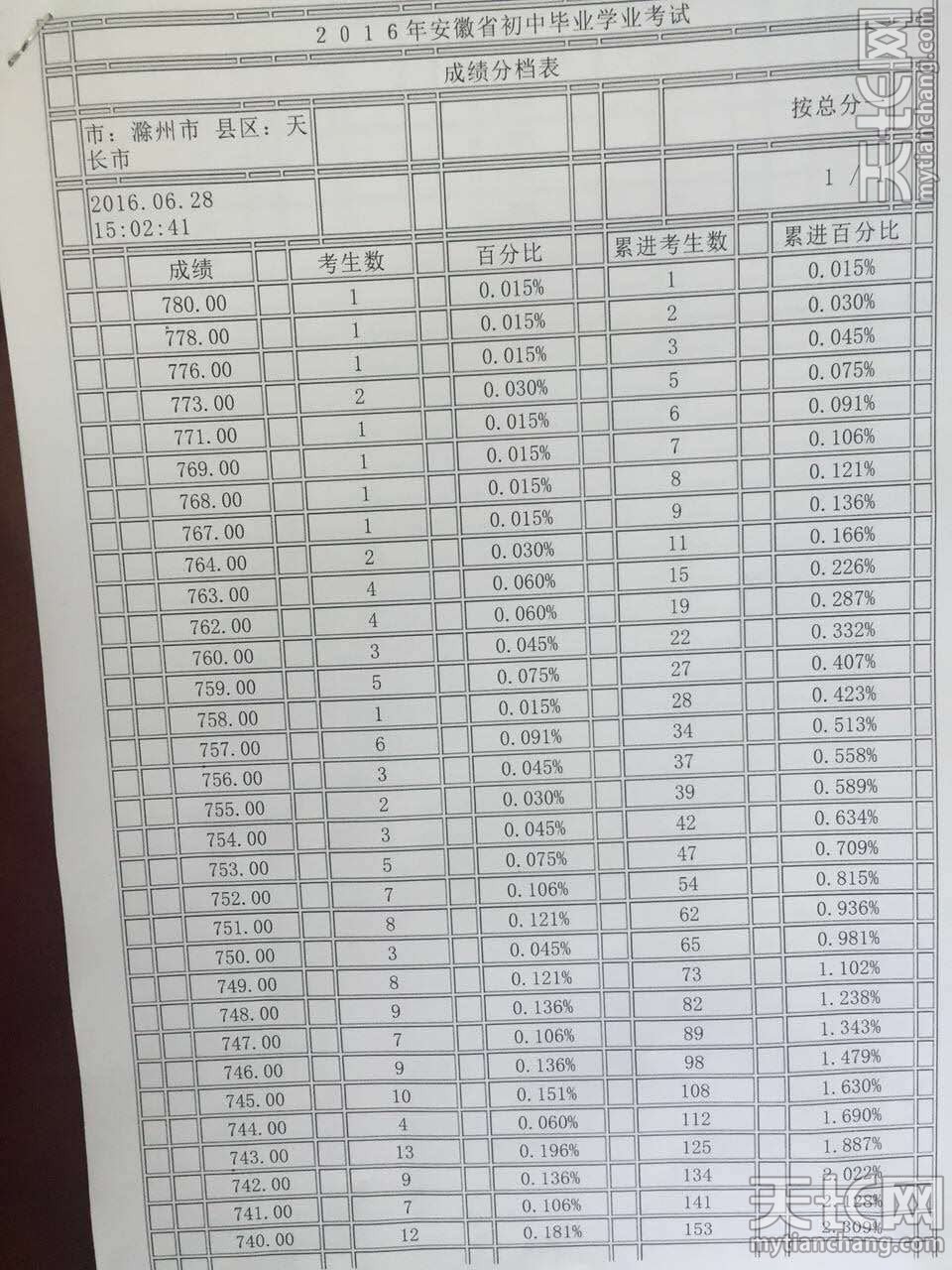 据悉,这是天长市今年中考分数档,与之前相传的中考状元780分相同,不知道是不是真的,当然以官方公布为准哈!