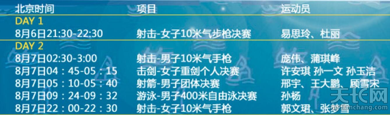 秦栏 发表于 2016-8-4 16:21 看看比赛日程
