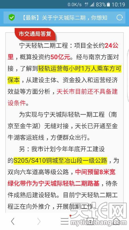 天长人关心的 地铁二期工程