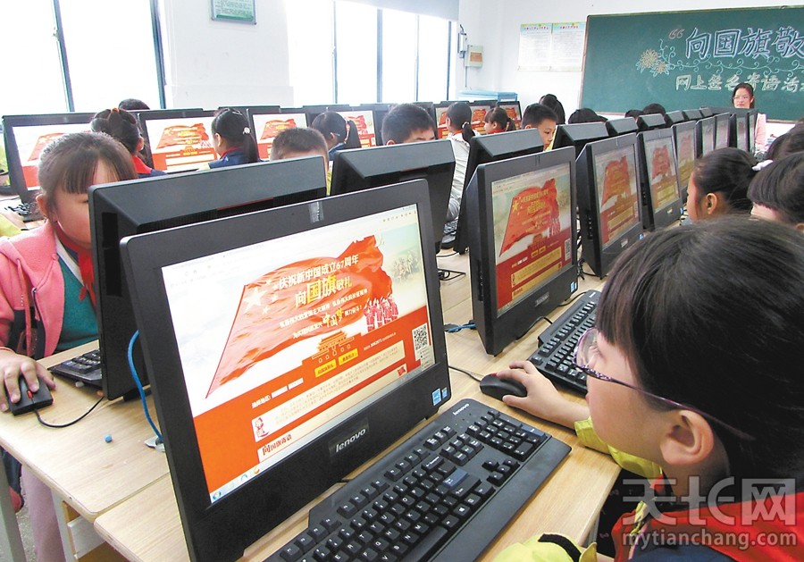 天长市第三小学组织600多名学生利用信息技术课,举办“庆祝新中国成立67周年”网上签名寄语活动,表达对祖国母亲的祝福。
