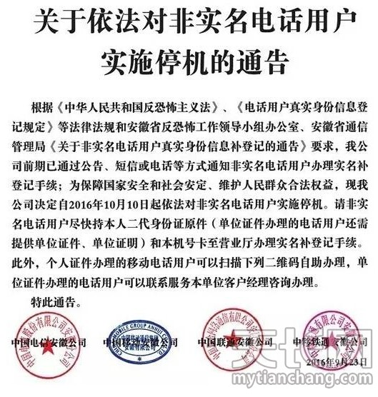 日前,被称为“史上最严”的停机令出台了,用户再不实名制真的会被停机!9月23日,四大电信安徽分公司联合发布关于依法对非实名电话用户实施停机的通告,通告称,自10月10日起,安徽将对非实名电话用户实施停机。非 ...