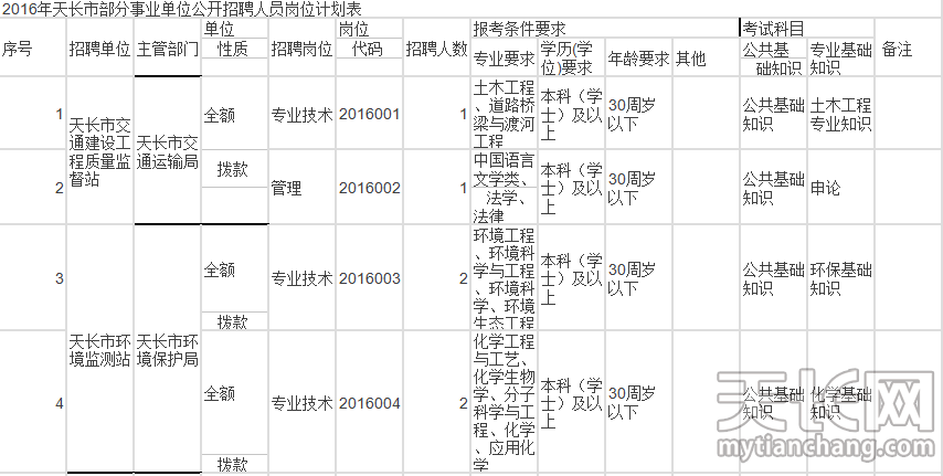 本帖最后由 包子 于 2016-10-12 15:46 编辑 根据《安徽省事业单位公开招聘人员暂行办法》和市委、市政府批准的招聘计划,2016年天长市部分事业单位面向社会公开招聘50名工作人员,现将有关事项公告如下: ...