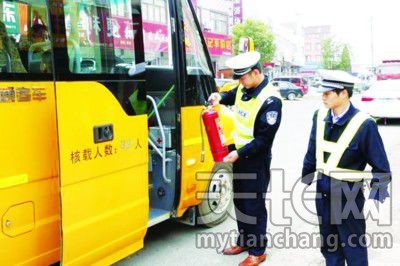 11月13日,天长市公安局交警大队关塘中队对辖区校车进行了安全检查,检查过程中,民警不仅对校车的轮胎、灯光灯具、反光标识、安全锤、逃生门、灭火器、安全带、停车指示牌等安全设备进行了认真检查,还对校车车 ...