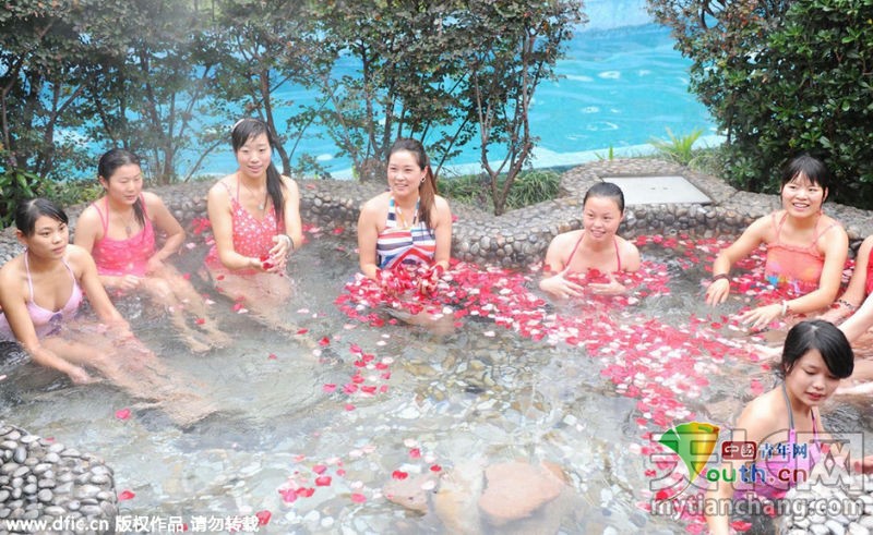 昨天,游客身着各式比基尼,在全椒浅水湾度假村泡温泉。。。