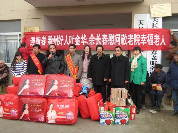 新春将至,为了使入住在敬老院里的孤残五保老人们过一个温暖、喜庆的佳节,元月12日,‘双拥’老人毕家峰组织滁州市好人叶金华、余长春,购买了棉被、棉鞋、棉袜及糕点等来到石梁、张铺等敬老院,分别看望慰问孤 ...