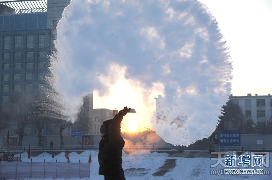 1月21日,哈尔滨一名市民向空中泼洒热水,泼出的水立刻凝成冰凌。冰城哈尔滨迎来一年中最冷的季节,室外温度已经降到零下30多摄氏度,用盆装满热水向空中一泼迅速就会结成冰凌;在室外行走半小时,睫毛就会挂上冰 ...