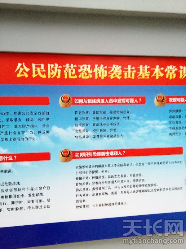 在防范恐怖袭击的基本常识上有两处错误,即使应该是及时,剃毛特征,应是体貌特征吧。