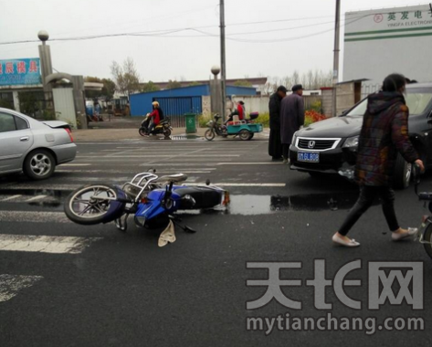 天杨路,在秦栏段的英发电子,一辆摩托车与私家车发碰撞,还好人没事,正在等交警出现场