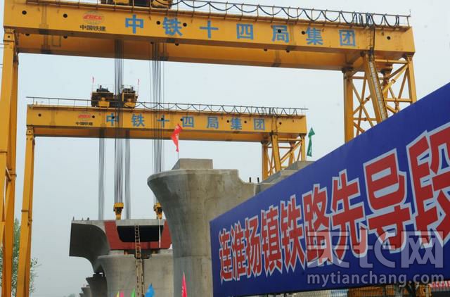 新华社迅 扬州(江苏),2016年4月12日连淮扬镇铁路全线首榀箱梁架设成功,施工人员在江苏扬州境内架设箱梁。 当日,连淮扬镇铁路全线首榀箱梁在江苏扬州架设成功。连淮扬镇铁路北起连云港,经淮安市、扬州市 ...