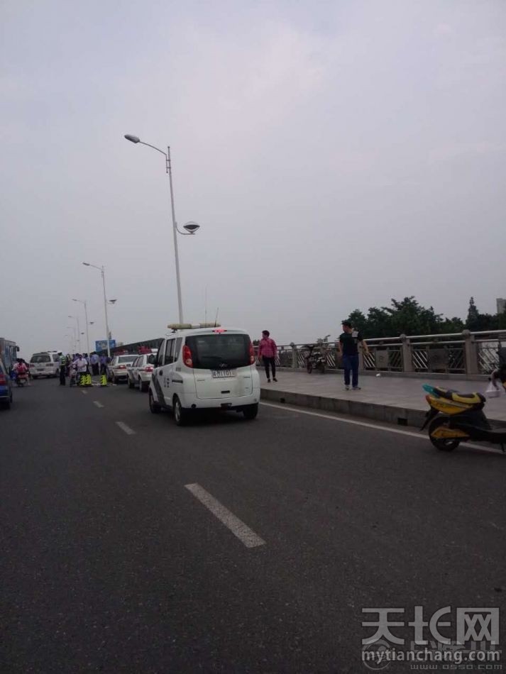 昨天下午在明光路大桥,有一名男子想要跳桥,民警已在现场劝阻。