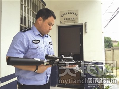 民警正在检验缴获的气枪 在滁务工的凤阳县男子纪某磊,近日为了“消磨时间”,竟然携带从网上购买的枪支,带着妻子和年仅8岁、才上小学一年级的女儿,跑到南谯区大柳镇的山林里偷偷射杀捕猎野鸟。记者昨 ...